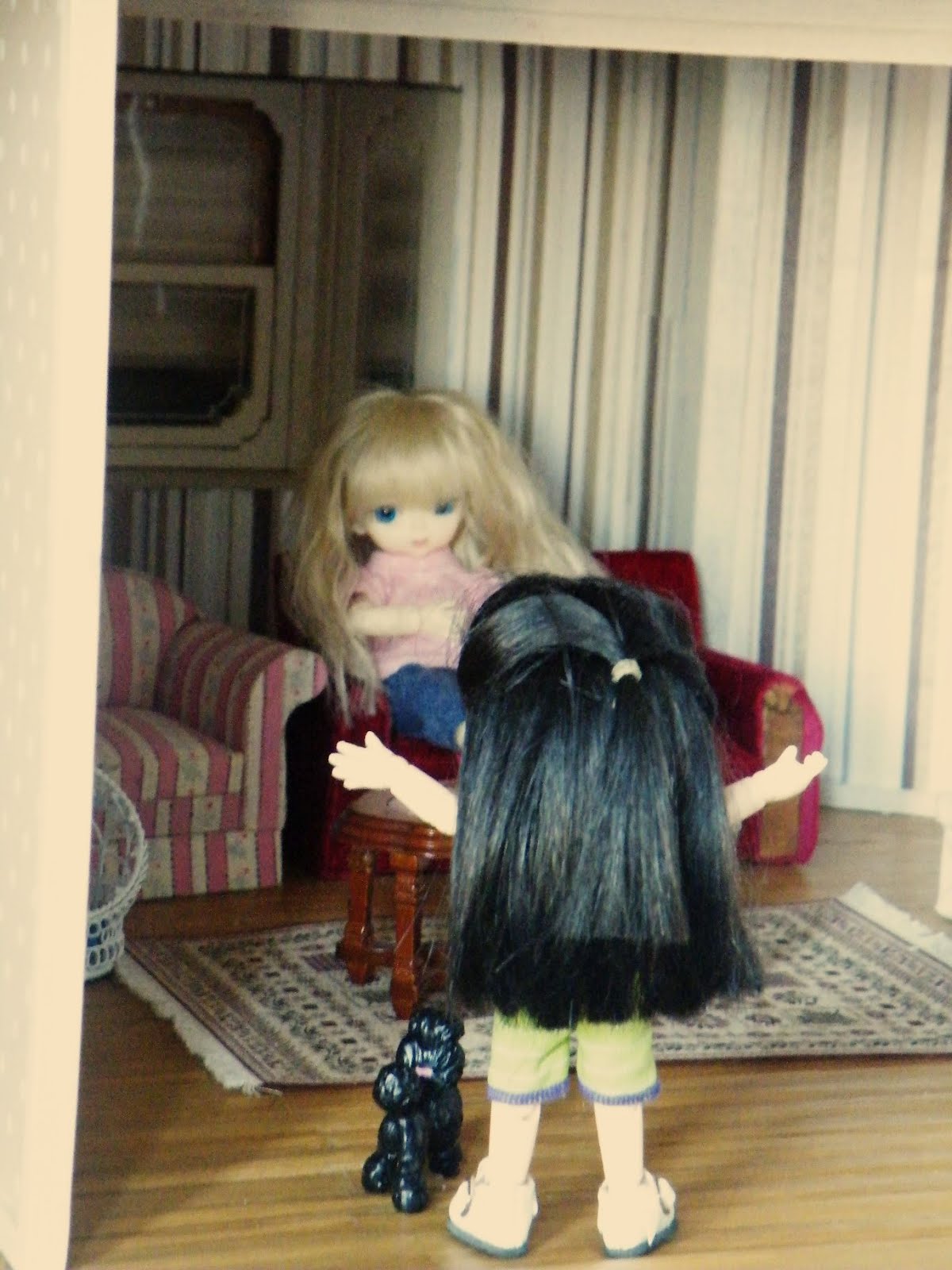 It was Harley's friend Sandy that he had invited on the phone the other day. She was so beautiful! Her dress was like rainbow silk and shimmered when she moved.